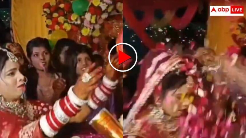 वायरल हो रहे वीडियो में देखा जा सकता है कि शादी समारोह के दौरान स्टेज पर दोनों परिवारों के लोग और मेहमान मौजूद हैं. वरमाला की रस्म शुरू होने वाली है और सबकी नजरें दूल्हा-दुल्हन पर टिकी हैं. इसी दौरान दुल्हन का चेहरा कुछ गंभीर नजर आता है. जब दुल्हन को दूल्हे को वरमाला पहनानी होती है, तो वह बड़े ही बेरुखी भरे अंदाज में माला को गले में डालने के बजाय फेंक देती है. यह देखकर वहां मौजूद लोग भी चौंक जाते हैं.