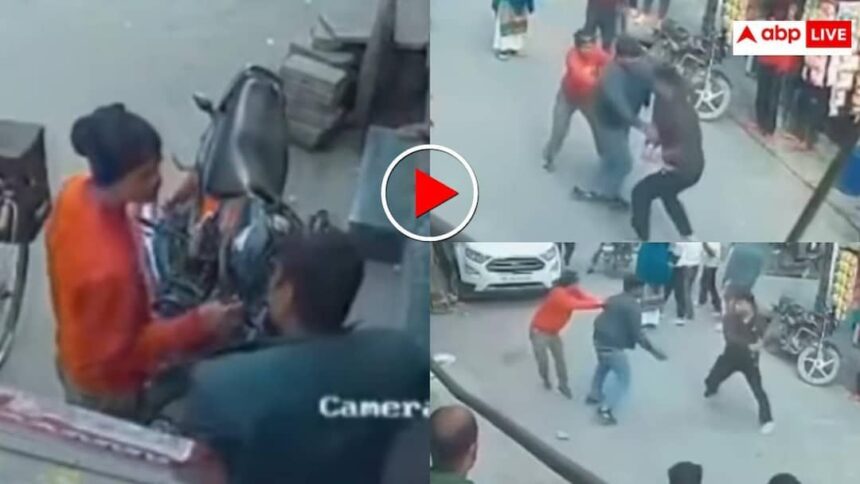 वीडियो में साफ दिखता है कि पिता बेटे को डांटते हुए थप्पड़ और झटके मार रहा होता है. आसपास लोग खड़े जरूर हैं, लेकिन कोई आगे नहीं आता. तभी ऑरेंज रंग की स्वेटशर्ट पहने एक युवक वहां पहुंचता है और पिता से कहता है कि बच्चे पर हाथ मत उठाओ. लेकिन पिता का गुस्सा इस पर और भड़क जाता है. वह न सिर्फ बेटे को छोड़ता है, बल्कि उस युवक पर भी टूट पड़ता है और दो चार थप्पड़ जड़ देता है.