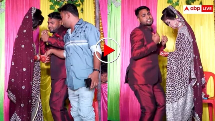 वायरल वीडियो में देखा जा सकता है कि स्टेज पर रंग-बिरंगे पर्दों के बीच दूल्हा-दुल्हन खड़े हैं. दूल्हा मैरून रंग के सूट में है और दुल्हन पारंपरिक लहंगे में सजी हुई है. जैसे ही गाना बजता है, दूल्हा अचानक एक्टिव मोड में आ जाता है. वह पूरे जोश के साथ गाने पर लिप्सिंग करता है और हाथ-पैर चलाकर डांस शुरू कर देता है. दुल्हन इस दौरान काफी शांत नजर आती है. वह ज्यादा रिएक्शन नहीं देती और सिर झुकाकर खड़ी रहती है. लेकिन दूल्हा मानो आज ही अपनी सारी डांसिंग स्किल्स दिखा देना चाहता हो. वह दुल्हन का हाथ पकड़कर उसे भी स्टेप्स कराने की कोशिश करता है. वीडियो देखकर ऐसा लग रहा है जैसे दूल्हा सोच चुका हो कि शादी के स्टेज को ही डांस फ्लोर बना दिया जाए.