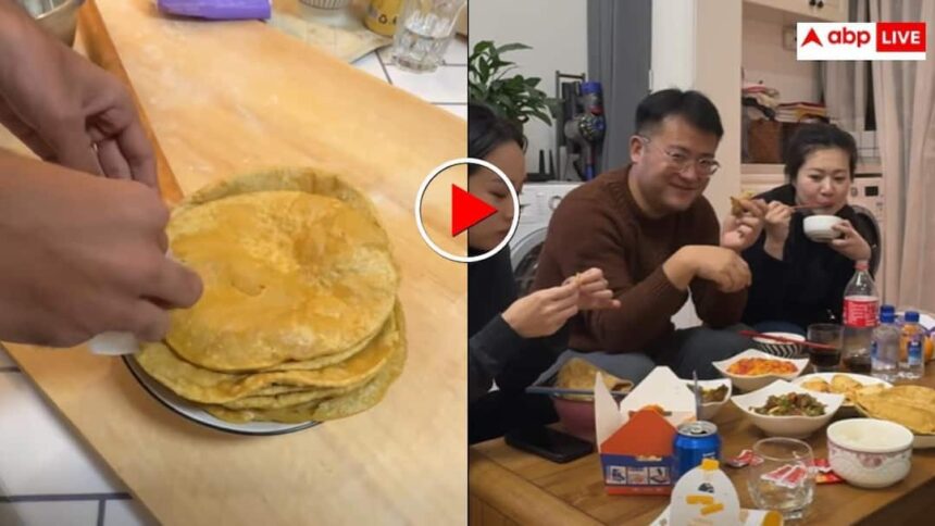 दरअसल, सोशल मीडिया पर भारतीय व्लॉगर अनमोल का एक वीडियो तेजी से वायरल हो रहा है जिसमें वो भारतीय पकवान छोले पूरी को चाइनीज फैमिली को सर्व करते दिखाई दे रहे हैं. इस दौरान उनके गाइड की फैमिली में जो महिलाएं होती हैं वो भारतीय खाने को लेकर काफी उत्सुक दिखाई देती है. अनमोल पहले तो खाना सर्व करने में हिचकिचाते हैं क्योंकि पूरी काफी ऑयल में सनी होती है, लेकिन फिर अखबार और टीशू की मदद से ऑयल को पौंछकर चाइनीज फैमिली को सर्व कर ही देते हैं.