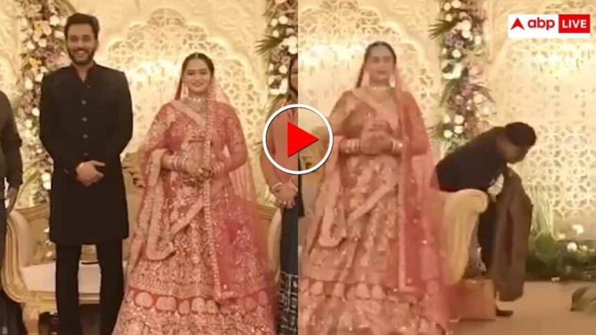 शादियों का सीजन चल रहा है. ऐसे में शादी वाले दिन दूल्हा दुल्हन मेहमानों से घिरे रहते हैं. कई बार इसी भीड़ का फायदा उठाकर चोर अपना हाथ साफ कर लेते हैं और जब तक चोरी का पता लगता है लंका लुट चुकी होती है. ऐसा ही एक वीडियो सोशल मीडिया पर वायरल हो रहा है जिसमें स्टेज पर मेहमानों के साथ फोटो खिंचा रही दुल्हन का पर्स इतनी सफाई से चुराया गया कि आप भी देखकर हैरान रह जाएंगे. वीडियो अब इंटरनेट पर तेजी से वायरल हो रहा है.