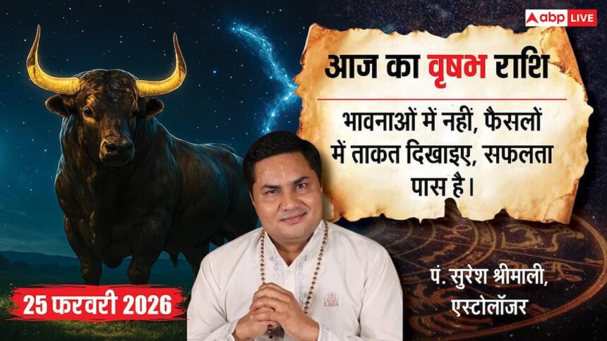 Vrishabh Rashifal 25 February 2026 in Hindi: आज चन्द्रमा आपकी ही राशि में स्थित हैं, जिससे भावनात्मक उतार-चढ़ाव अधिक रह सकता है.