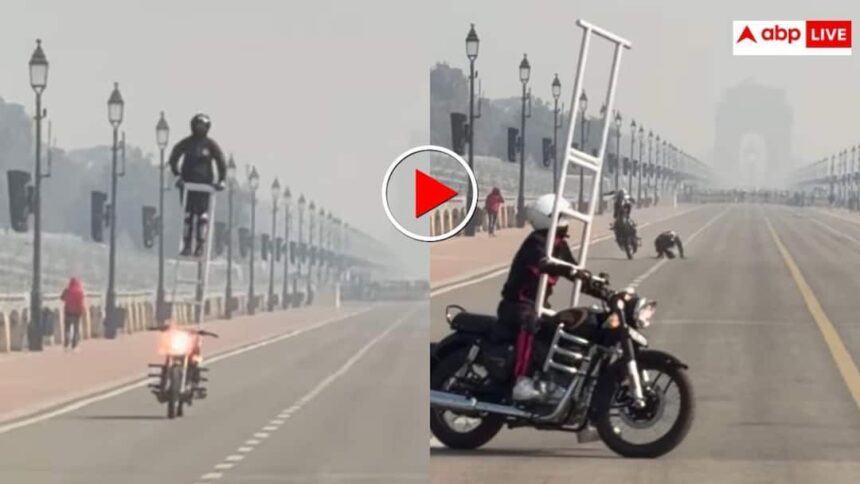 वायरल हो रहे इस वीडियो में देखा जा सकता है कि इंडिया गेट के पास गणतंत्र दिवस की रिहर्सल चल रही है. सड़क के दोनों ओर लाइट पोल लगे हुए हैं और दूर तक फैला हुआ रास्ता पूरी तरह खाली है. इसी दौरान कुछ जवान बाइक पर हैरतअंगेज स्टंट का अभ्यास कर रहे हैं. ये वही स्टंट हैं, जिन्हें 26 जनवरी की परेड में देखने के लिए लोग हर साल बेसब्री से इंतजार करते हैं.
