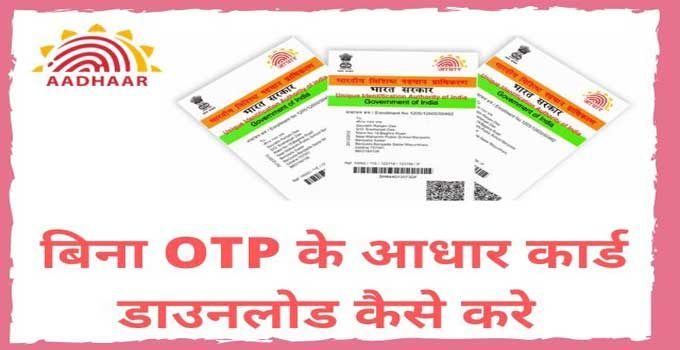 यदि आप बिना ओटीपी के आधार कार्ड को डाउनलोड करना चाहते है, तो इस लेख को अंत तक अवश्य पढ़ें क्योंकि इस लेख में हमने आपको बिना ओटीपी के आधार कार्ड को डाउनलोड करने की प्रक्रिया के बारे में सम्पूर्ण जानकारी प्रदान की है जिससे कि आप बहुत आसानी से घर बैठे आधार कार्ड को डाउनलोड कर पाएंगे।