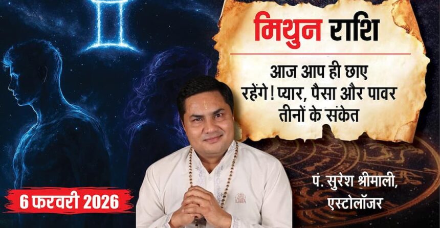 Mithun Rashifal 6 February 2026 in Hindi: आज चंद्रमा आपकी राशि से चौथे भाव (4th House) में गोचर कर रहे हैं. यह भाव सुख और माता का होता है, जहाँ चंद्रमा की उपस्थिति आज भूमि-भवन या प्रॉपर्टी से जुड़े मामलों में कुछ अड़चनें पैदा कर सकती है. आज आपको अपने जीवन के प्रति नजरिया (Perspective) बदलने की आवश्यकता है, क्योंकि दृष्टिकोण में बदलाव ही आपके जीवन में सकारात्मकता लाएगा.
