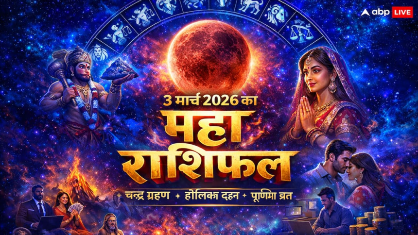Aaj Ka Rashifal: 3 मार्च 2026 को फाल्गुन पूर्णिमा के साथ-साथ होलिका दहन और पूर्ण चंद्र ग्रहण का एक बहुत ही दुर्लभ संयोग बन रहा है. ज्योतिष की दुनिया में जब त्योहार और ग्रहण एक साथ आते हैं, तो इसका सीधा असर हमारी जेब, सेहत और मानसिक शांति पर पड़ता है. आज का राशिफल इन्हीं खास खगोलीय घटनाओं को ध्यान में रखकर तैयार किया गया है, ताकि आप जान सकें कि ग्रहण के दौरान क्या करें और क्या न करें.