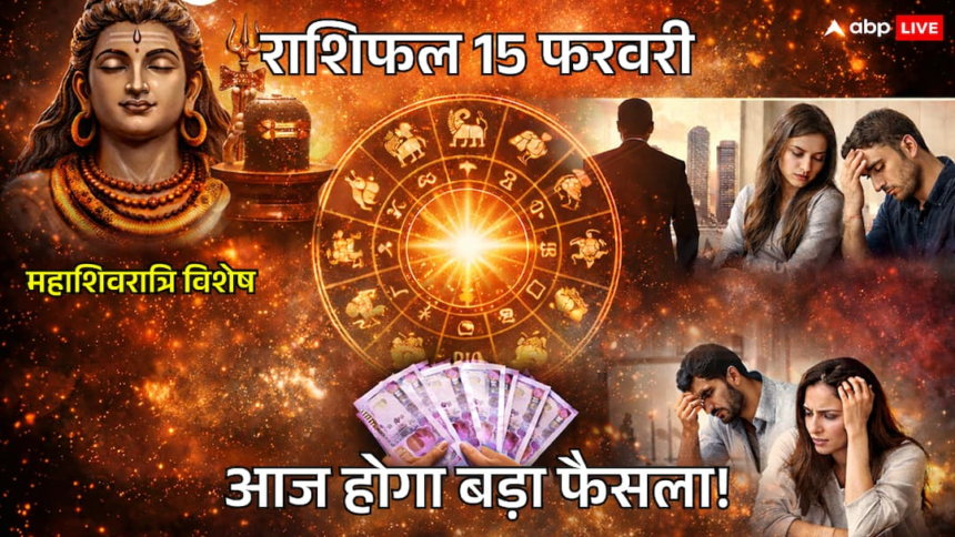 क्या आज आपकी राशि में राजयोग बन रहा है या आपको आज के दिन सतर्क रहने की जरूरत है? महादेव की कृपा आपके जीवन के किस क्षेत्र में चमत्कार करने वाली है? आइए विस्तार से जानते हैं 15 फरवरी 2026 का संपूर्ण राशिफल, शुभ अंक और भाग्यशाली रंग.