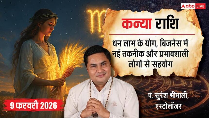 Kanya Rashifal 9 February 2026 in Hindi: आज का दिन कन्या राशि के जातकों के लिए आज का दिन आर्थिक समृद्धि और नई संभावनाओं से भरा रहेगा. चंद्रमा के दूसरे भाव में होने से धन लाभ के प्रबल योग बन रहे हैं. आज आपकी वाणी और बुद्धिमत्ता आपको सफलता दिलाने में सहायक सिद्ध होगी. सामाजिक रूप से भी आप काफी सक्रिय रहेंगे.