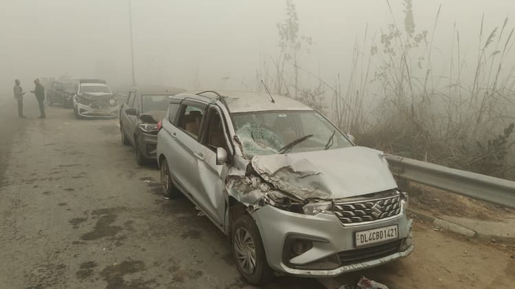 हाईवे पर शहवाजपुर डोर के निकट कोहरे में दृश्यता शून्य होने के कारण दो घंटे में तीन रोडवेज बस समेत 50 से अधिक वाहन एक दूसरे से भिड़ गए।