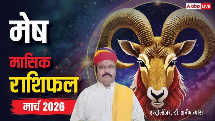 Mesh March horoscope 2026: ज्योतिष के अनुसार ग्रहों की स्थिति के आधार पर किसी राशि के बारे में जाना जाता है. ग्रहों की स्थिति हर माह अलग-अलग होती है. आइए मासिक राशिफल में जानते हैं,मार्च (March 2026) का महीना मेष राशि वालों के लिए कैसा रहेगा (Mesh Monthly Horoscope).