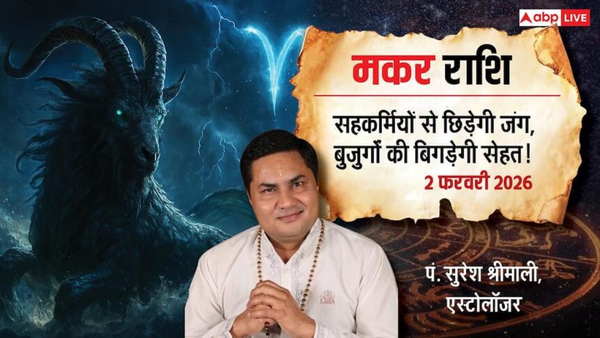 Makar Rashifal 2 February 2026 in Hindi: मकर राशि के जातकों के लिए आज का दिन अनुशासन और धैर्य के साथ आगे बढ़ने का है. चंद्रमा की स्थिति आपके आत्मविश्वास को बढ़ाएगी, जिससे आप लंबित कार्यों को पूरा करने में सक्षम होंगे. यहाँ आपके जीवन के विभिन्न क्षेत्रों का विस्तृत राशिफल दिया गया है:
