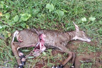जंगली पशु ने एक नीलगाय के बच्चे पर किया हमला