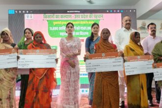UP News : मा0 उद्यान मंत्री, सदर विधायक व डीएम ने लाभार्थियों को चेक किया वितरण