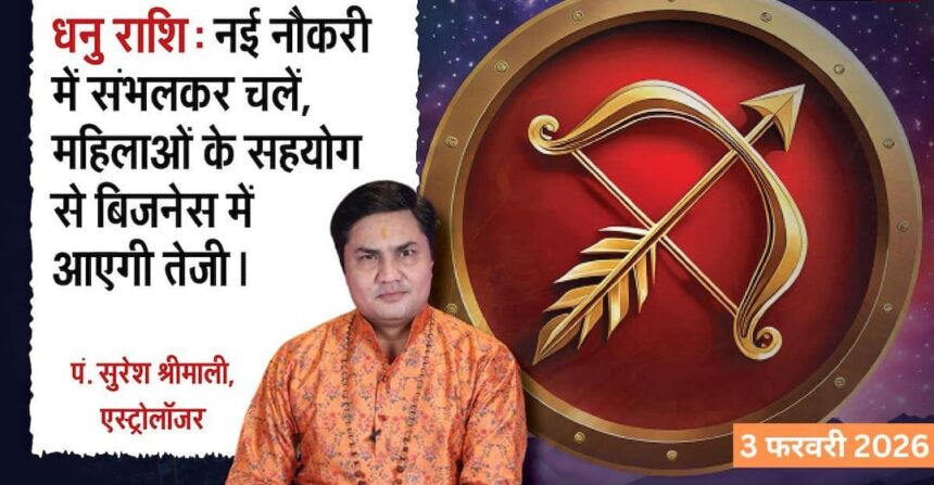 Dhanu Rashifal 3 February 2026 in Hindi: धनु राशि वालों के लिए आज का दिन आत्म-सुधार और धार्मिक कार्यों में रुचि बढ़ाने वाला है. आपकी राशि का स्वामी गुरु आज आपको सही दिशा में निर्णय लेने की प्रेरणा देगा. आज आप किसी लंबी दूरी की यात्रा या किसी धार्मिक अनुष्ठान की योजना बना सकते हैं. मन में उत्साह बना रहेगा, जिससे कठिन कार्य भी आसानी से पूरे होंगे.