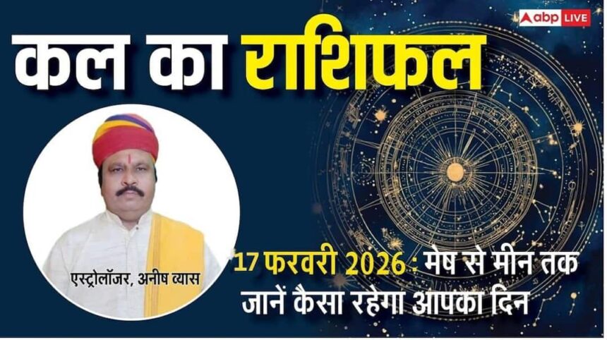 Kal Ka Rashifal: भविष्यवक्ता: डॉ. अनीष व्यास (पाल बालाजी ज्योतिष संस्थान) शनिवार, 17 फरवरी 2026 का दिन सभी 12 राशियों के लिए महत्वपूर्ण रहने वाला है. ग्रहों की स्थिति के अनुसार आज कुछ राशियों को धन लाभ होगा, तो कुछ को सेहत का ध्यान रखना होगा. आइए जानते हैं कल का राशिफल-
