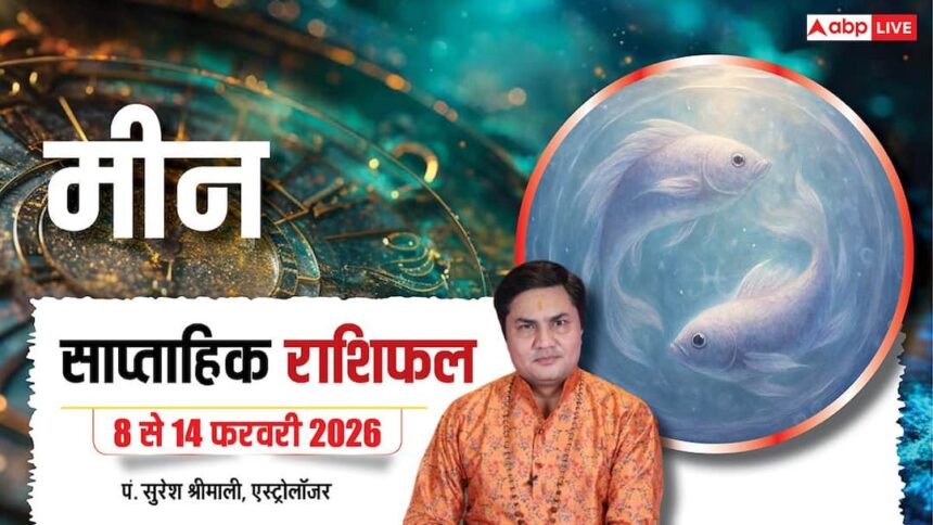 Meen Weekly Horoscope 8 to 14 February 2026: मीन राशि (Pisces) राशि चक्र की 12वीं और अंतिम राशि है. इसका प्रतीक ‘दो मछलियां’ हैं जो एक-दूसरे से विपरीत दिशा में तैर रही हैं, जो इस राशि के जातकों के भीतर चलने वाले द्वंद्व और गहराई को दर्शाती हैं.