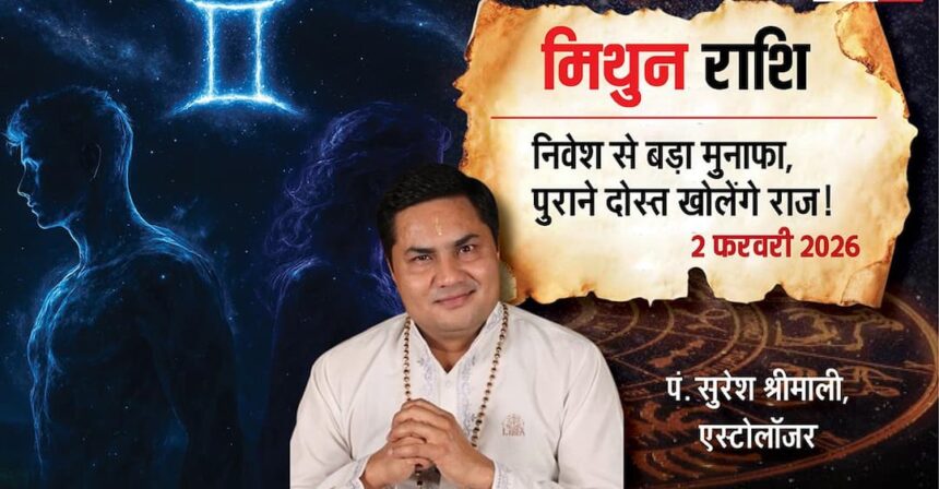 Mithun Rashifal 2 February 2026 in Hindi: मिथुन राशि के जातकों के लिए आज का दिन आर्थिक समृद्धि और रिश्तों में मधुरता लेकर आया है. आपकी राशि से चंद्रमा आज द्वितीय भाव (धन भाव) में गोचर कर रहे हैं, जो निवेश और पारिवारिक सुख के लिए अत्यंत शुभ संकेत है. आइए विस्तार से जानते हैं आपका आज का दिन कैसा रहेगा.