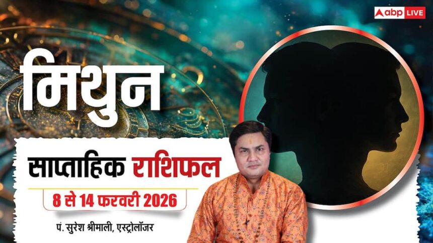 Mithun Weekly Horoscope 8 to 14 February 2026: मिथुन राशि वालों के लिए यह सप्ताह नए अवसरों और सामाजिक मेलजोल का रहेगा. आपकी बहुमुखी प्रतिभा आपको कार्यस्थल और निजी जीवन में प्रशंसा दिलाएगी, लेकिन साथ ही आपको अपने खर्चों पर भी लगाम लगानी होगी.