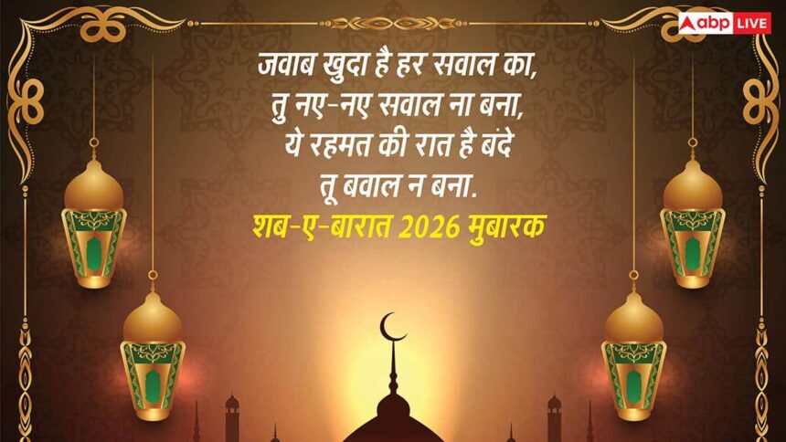 Shab-e-Barat 2026 Wishes: शब-ए-बारात इस्लाम धर्म के अहम त्योहारों में एक है शब-ए-बारात की रात को मगफिरत यानी माफी की रात कहा जाता है. इस्लाम में ऐसी मान्यता है कि, इस रात अल्लाह अपने बंदों से सारे गुनाहों को माफ कर देता है.