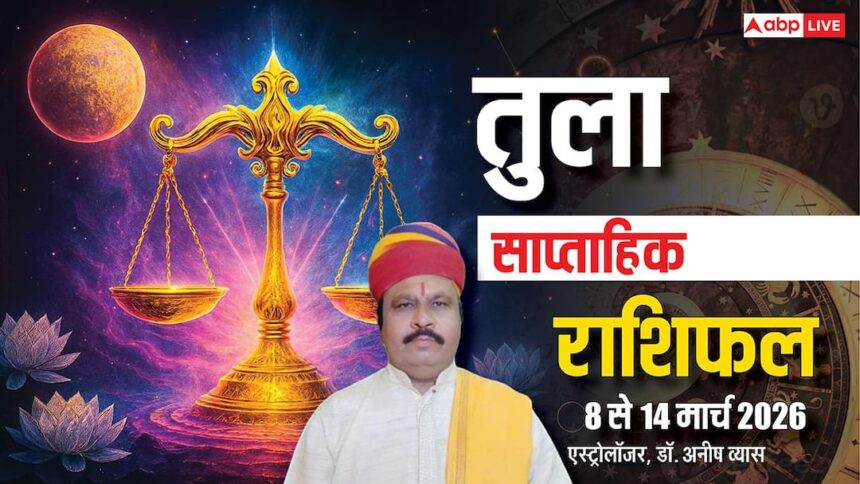 Libra Weekly Horoscope 2026 (8 to 14 March): मार्च 2026 महीने का यह नया सप्ताह 8 से 14 मार्च का समय तुला राशि के करियर, कारोबार, आर्थिक स्थिति, पारिवारिक व प्रेम जीवन और सेहत आदि के लिए यह सप्ताह कैसा रहेगा. तुला राशि वाले यहां पढ़ें अपना पूरा साप्ताहिक राशिफल.