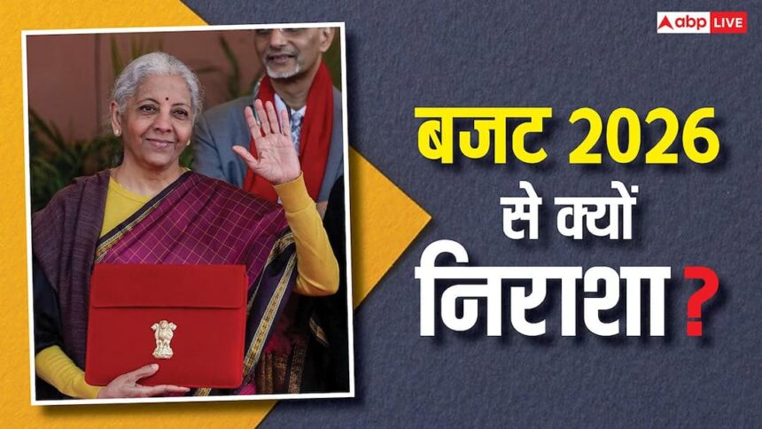 Budget 2026 Disappointment: वित्त मंत्री निर्मला सीतारमण ने संसद में यूनियन बजट 2026 पेश कर दिया हैं. लोग इस बजट को आम लोगों, महिलाओं, किसानों और युवाओं से जोड़कर देख रहे हैं. केंद्र सरकार की ओर से करीब 53 लाख करोड़ रुपये से ज्यादा के इस बजट में कई महत्वपूर्ण घोषणाएं की गई हैं. नए रेल कॉरिडोर, गंभीर बीमारियों की दवाओं को सस्ता करने जैसे ऐलानों को सरकार के बड़े फैसलों के रूप में देखा जा रहा हैं. जिससे कुछ वर्गों को राहत मिलने की उम्मीद भी बनी है.
