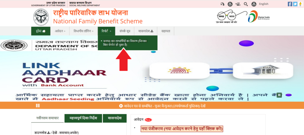 ‘समाज कल्याण पारिवारिक लाभ अंतिम रिपोर्ट’ लिंक पर क्लिक करें