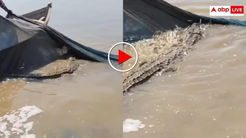 नदी का पानी, सन्नाटा और अचानक जाल में फंसा एक विशाल मगरमच्छ. जिस जानवर को देखकर अच्छे-अच्छों की रूह कांप जाती है, उसे गांव के लोग ऐसे घसीटते नजर आ रहे हैं जैसे कोई आम मछली जाल में फंस गई हो. न डर, न हड़बड़ी, न अफसोस. यह नजारा किसी फिल्म का सीन नहीं, बल्कि सोशल मीडिया पर वायरल हो रहा एक खौफनाक वीडियो है, जिसने हर देखने वाले को हैरान कर दिया है.