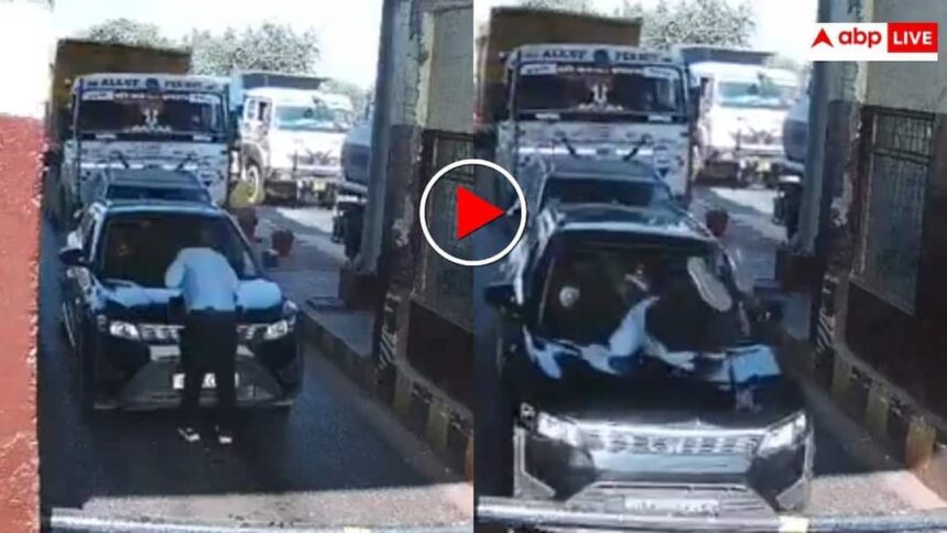 वायरल वीडियो में साफ देखा जा सकता है कि एक टोल प्लाजा पर दो गाड़ियां आगे की ओर खड़ी हैं. दोनों गाड़ियों के सामने एक व्यक्ति अपनी टोल पर्ची लेकर टोल बूथ से बाहर निकलता है और कुछ कदम आगे खड़ा हो जाता है. तभी अचानक पीछे की ओर से तेज रफ्तार में आता एक डंपर दिखाई देता है. डंपर की रफ्तार इतनी ज्यादा होती है कि ड्राइवर उसे कंट्रोल ही नहीं कर पाता. अगले ही पल डंपर सीधे दोनों खड़ी गाड़ियों में जा घुसता है.
