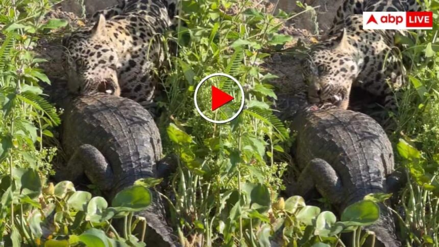 झाड़ियों के बीच तेंदुआ मगरमच्छ पर पूरी तरह हावी हो जाता है और उसका पेट फाड़कर उसे खाने लगता है. यह पूरा दृश्य कैमरे में कैद हो जाता है. वीडियो देखने वाले लोग इस खतरनाक मुकाबले को देखकर दंग रह गए हैं. कई लोगों का कहना है कि आमतौर पर मगरमच्छ को पानी का राजा माना जाता है, लेकिन यहां जमीन पर तेंदुए ने अपनी ताकत का ऐसा प्रदर्शन किया कि मगरमच्छ के लिए बचना मुश्किल हो गया.