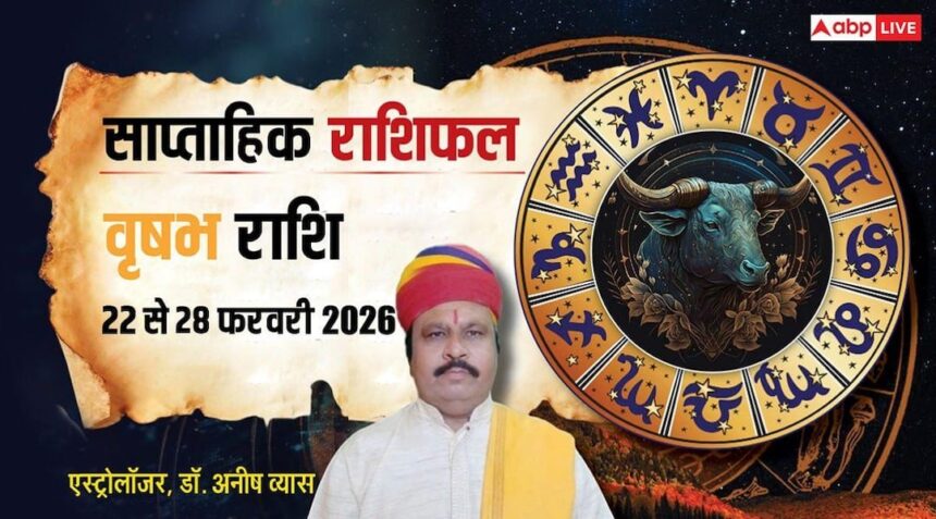 Vrishabh Weekly Horoscope 2026 (22 to 28 february): फरवरी 2026 महीने का आखिरी सप्ताह 15 से 21 फरवरी का समय वृषभ राशि के करियर, कारोबार, आर्थिक स्थिति, पारिवारिक व प्रेम जीवन और सेहत आदि के लिए यह सप्ताह कैसा रहेगा. वृषभ राशि वाले ज्योतिषाचार्य अनीष व्यास से जानें अपना भविष्यफल, यहां पढ़ें अपना पूरा साप्ताहिक राशिफल.