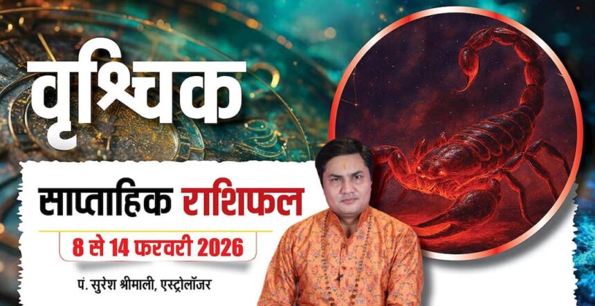 Vrishchik Weekly Horoscope 8 to 14 February 2026: वृश्चिक राशि वालों के लिए यह सप्ताह थोड़ा चुनौतीपूर्ण लेकिन सीख देने वाला रहेगा. ग्रहों की स्थिति संकेत दे रही है कि आपको अपनी योजनाओं को गुप्त रखना चाहिए और किसी भी कार्य में जल्दबाजी करने से बचना चाहिए.